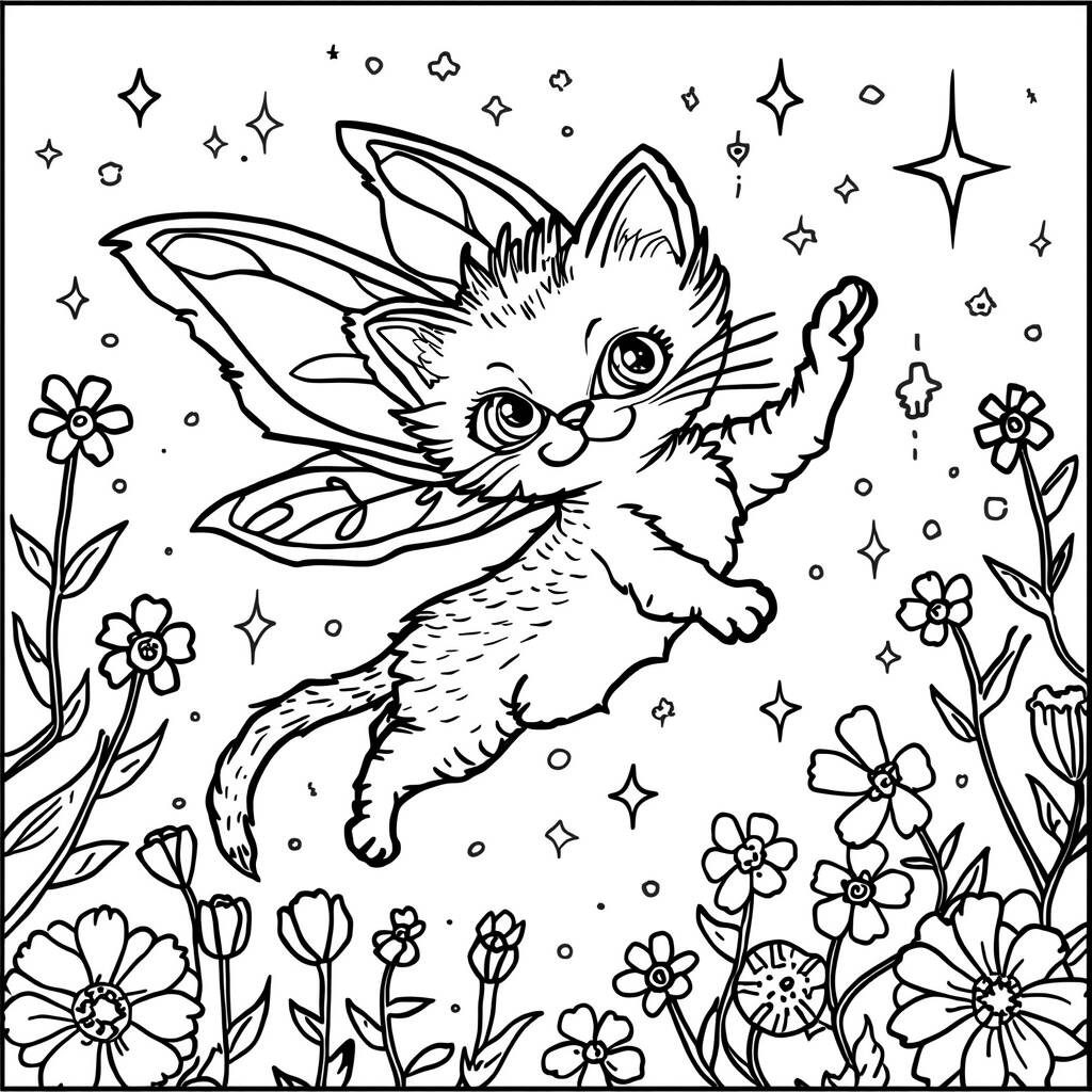 In the magical kingdom of Florália, an enchanted cat named Lumin befriends a fairy named Brisa. Lumin, with his fairy wings and a special glow, flies among the colorful flowers while Breeze guides him through stunning landscapes. Together, they explore fields filled with flowers and twinkling stars, where each day is a new adventure full of laughter and discovery. Their friendship is so strong that even the flowers dance to the sound of their laughter.