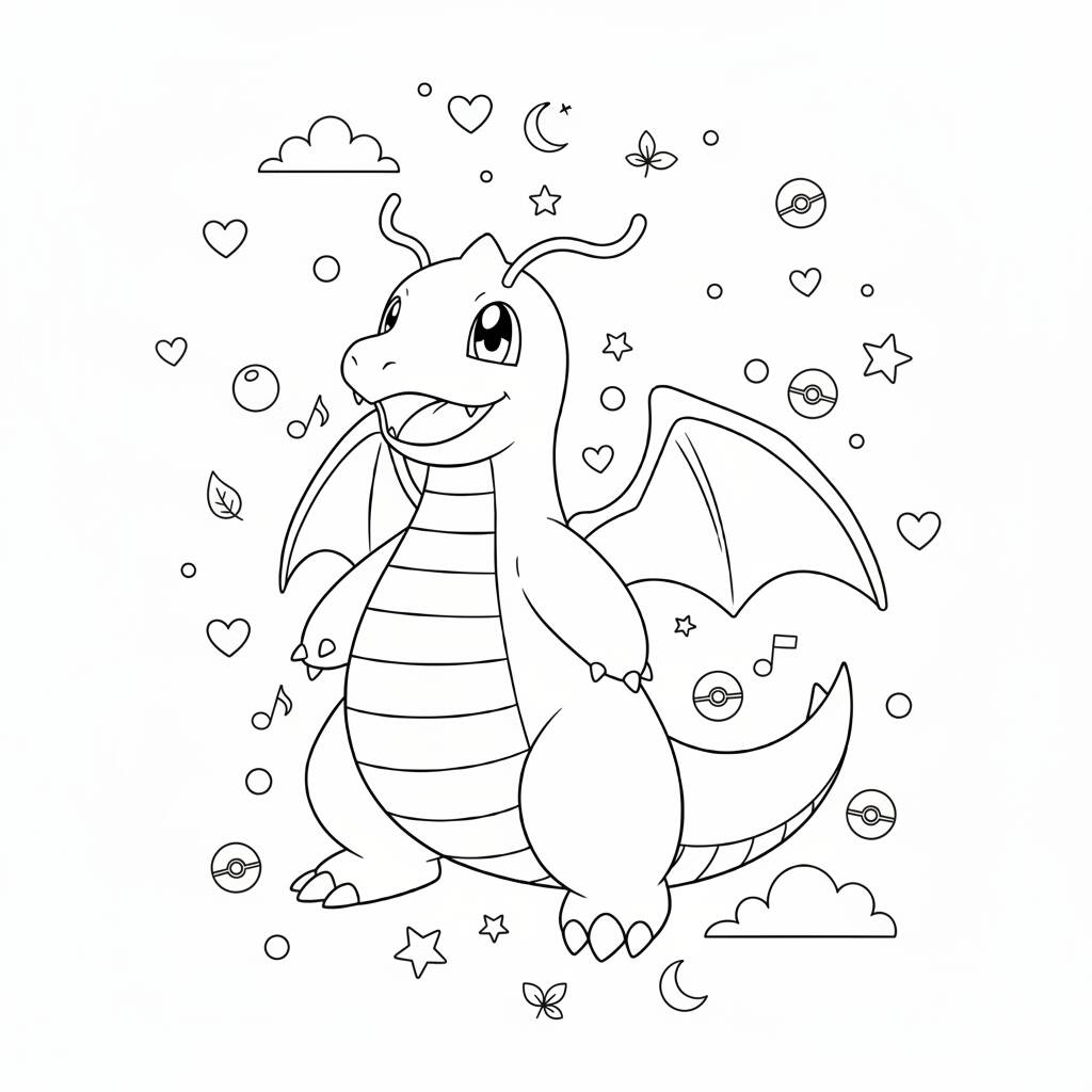 Pokémon Dragonite coloring page, ideal for fans and craft lovers.