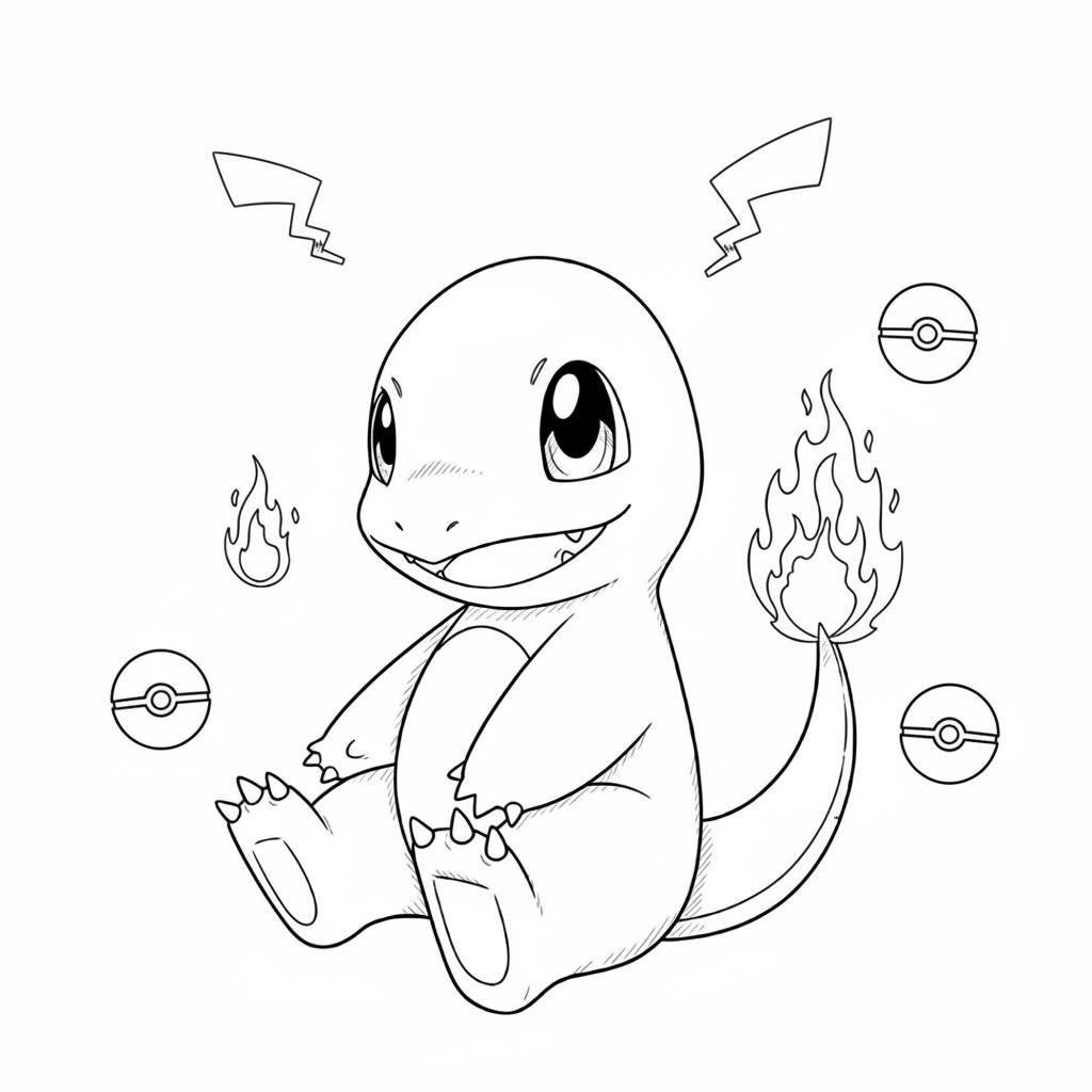 Divirta-se colorindo este adorável desenho do Charmander, um dos Pokémon mais queridos!