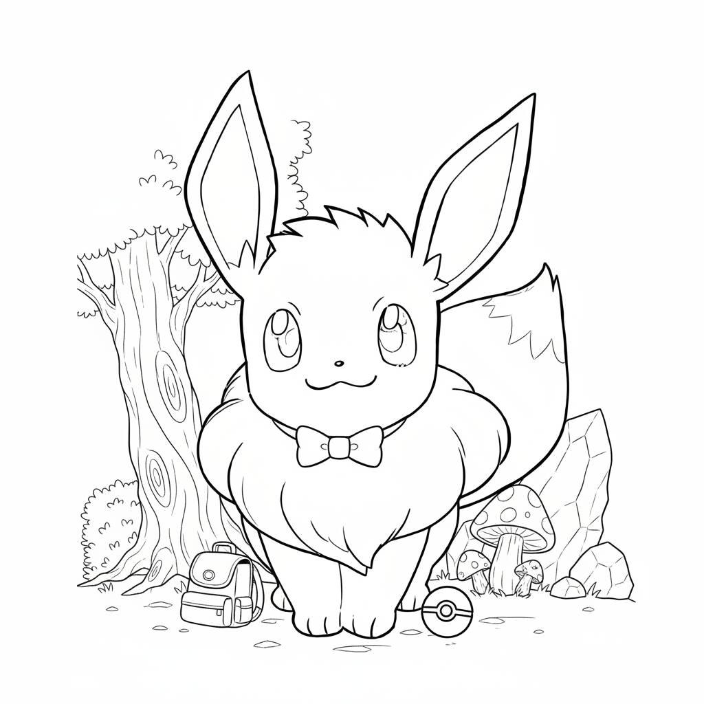 Divirta-se colorindo este adorável desenho do Pokémon Eevee em um cenário encantador.