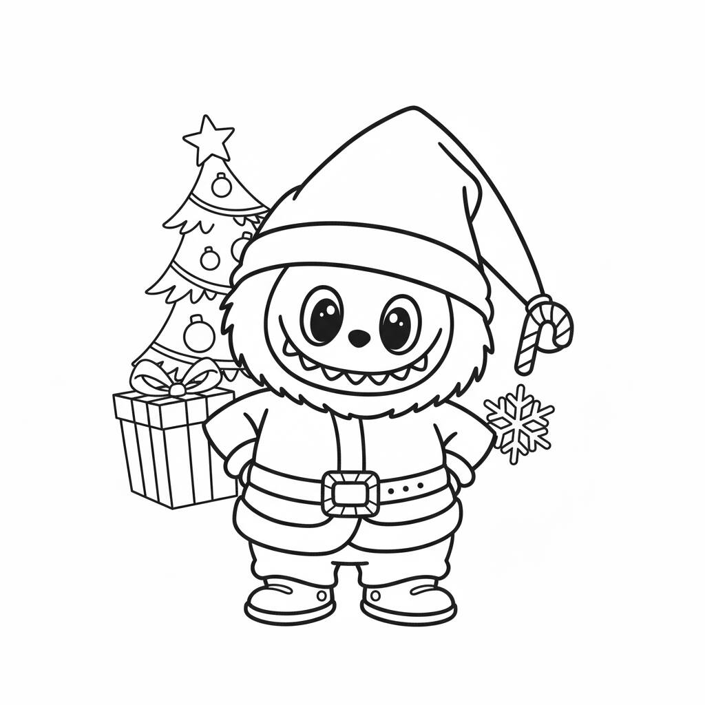 Coloração divertida do Labubu em um tema natalino, perfeito para crianças.