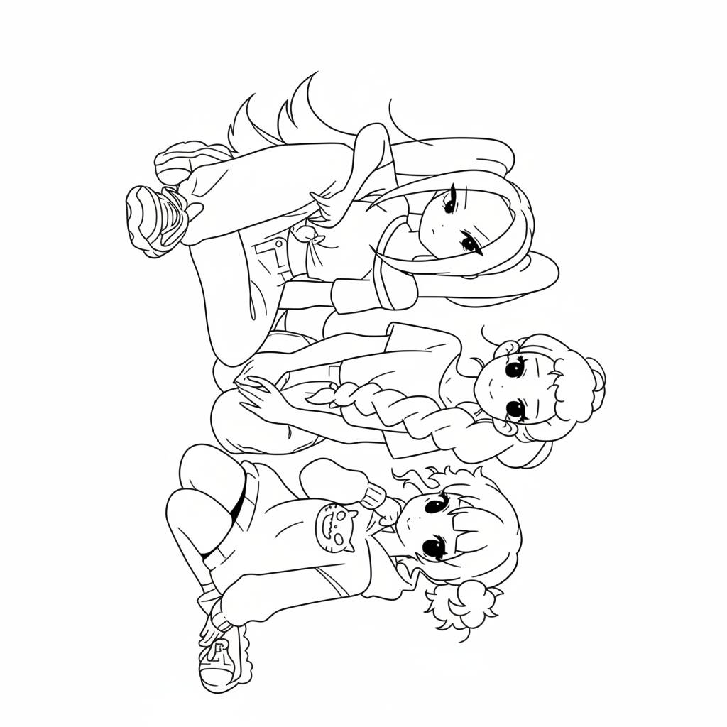Colorir este desenho de três meninas estilosas traz diversão e criatividade para crianças e adultos.