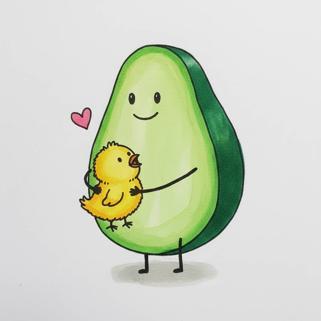 Início » Desenhos Para Colorir » Desenho Fofo: abacate segurando um pintinho